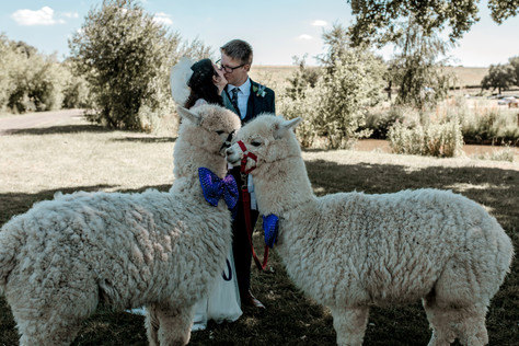 Following the church service, the wedding party and guests made their way to Allcot Farm where a giant tipi tent had been set up, surrounded by hay bales, homemade blankets and rustic decorations. The food was amazing, a Fish and chips van, with an evening hog roast and ice-cream cart! It was a really fun reception with lawn games, dancing and even some adorable alpacas!